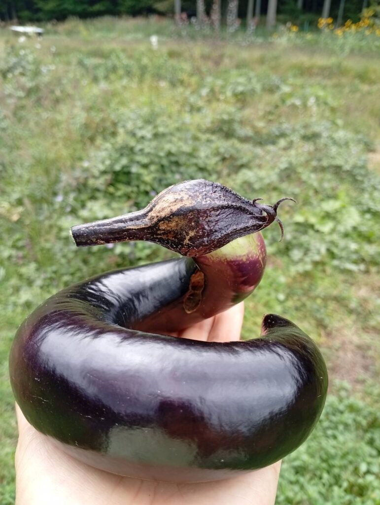それからナスとピーマンがとにかくよく出来ました。今年はビニールハウスを導入し、ちゃんと苗を育ててから定植したので雑草に負けることなくよく育ちました。しかも本来なら支柱をしてあげないといけないのですが資材と労力が足りずほったらかしのままでしたが問題なく収穫できました。